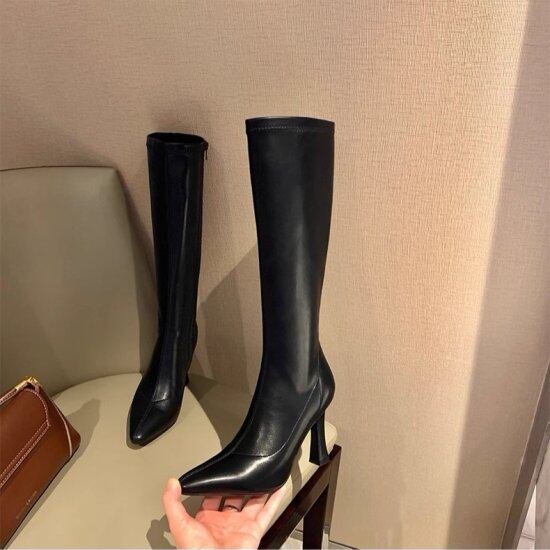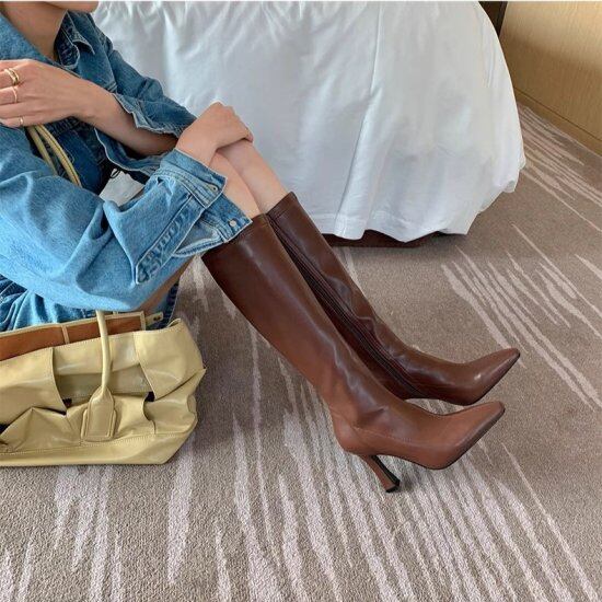 スタイルアップが叶うハイヒールのロングブーツ。