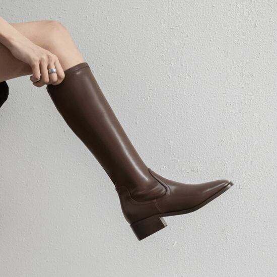 ロングブーツ レディース 大きいサイズ 太ヒール ローヒール ファスナー ロング丈 無地 シンプル 美脚 履き口 ゆったり 通勤 デート 女子会 お出かけ 休日 10代 20代 30代 40代 秋冬
