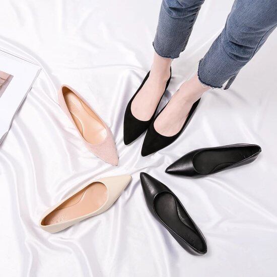 パンプス レディース ポインテッドトゥ フラットシューズ フェイクレザー エコレザー スエード ローヒール 1cmヒール ぺたんこ シンプル 定番 オフィス きれいめ カジュアル 靴 おしゃれ