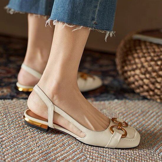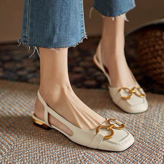 パンプス レディース バックストラップ スクエアトゥ サンダル ミュール ローヒール 太ヒール 2.5cmヒール フェイクレザー エコレザー レトロ クラシカル きれいめ カジュアル 靴 おしゃれ