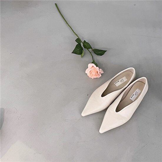 パンプス レディース フラットシューズ ポインテッドトゥ フェイクレザー エコレザー ローヒール 2cmヒール ぺたんこ シンプル きれいめ カジュアル レトロ 脚長 美脚 オフィス 靴 おしゃれ