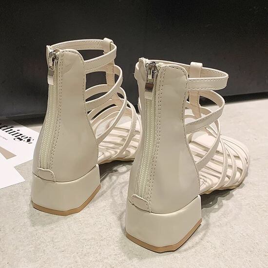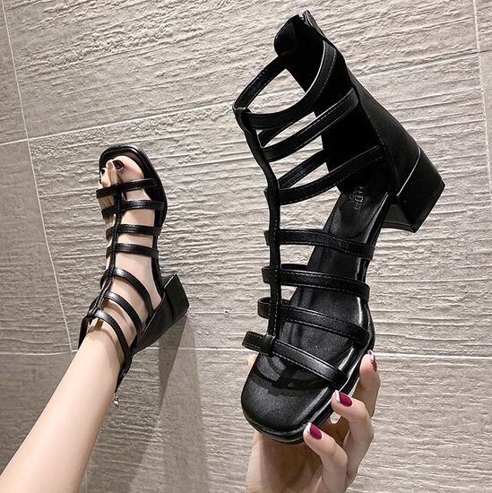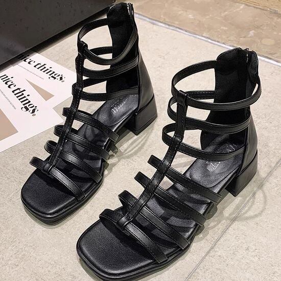 サンダル レディース レースアップ チャンキーヒール ネット ブラック オフホワイト サンダル ヒール 美脚 サンダル オープントゥ おしゃれ 夏 ミッドヒールサンダル 美脚 オープントゥ 夏