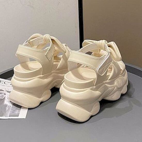 サンダル レディース ウェッジソール 厚底 ブラック オフホワイト ブラウン 厚底 サンダル 美脚 ウェッジソール 歩きやすい サンダル リボン オープントゥ かわいい 美脚 痛くない 疲れにくい