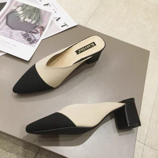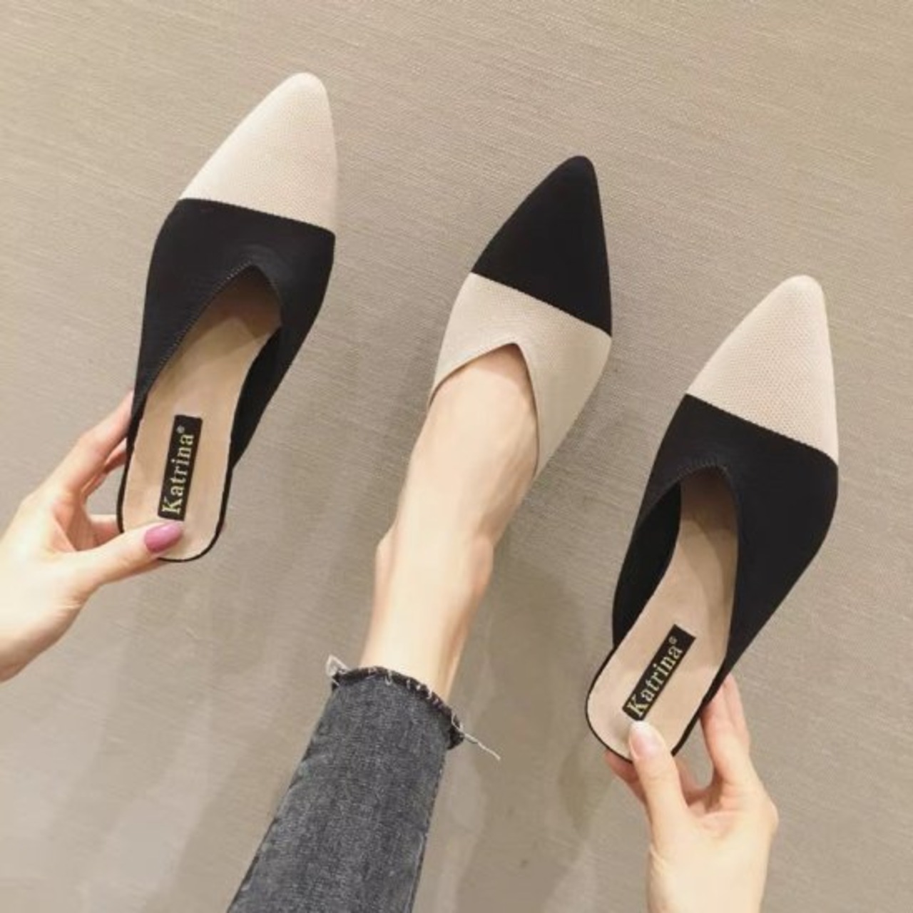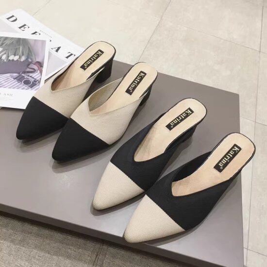 ミュール レディース サンダル Vカット バイカラー ポインテッドトゥ ミドルヒール 太ヒール 5.5cmヒール 配色 シック モード きれいめ 上品 カジュアル オフィス パーティー おしゃれ
