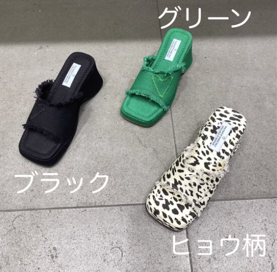 オープントゥ サンダル ウエッジソール レディース 厚底 靴 ヒール かわいい 夏 カジュアル 黒 緑 ヒョウ柄 ミュールサンダル ミュール オープントゥ サンダル ウエッジソール