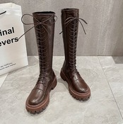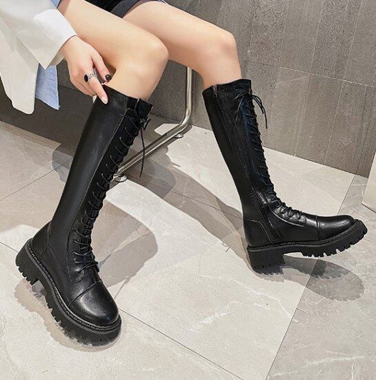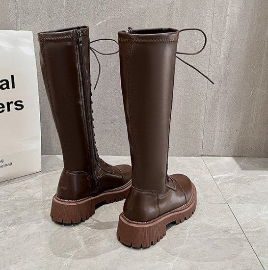 ロングブーツ 厚底 大きいサイズ レディース 太ヒール ロング丈 レースアップブーツ 編み上げブーツ ファスナー 無地 シンプル 通勤 デート 女子会 お出かけ 10代 20代 30代 40代 秋冬