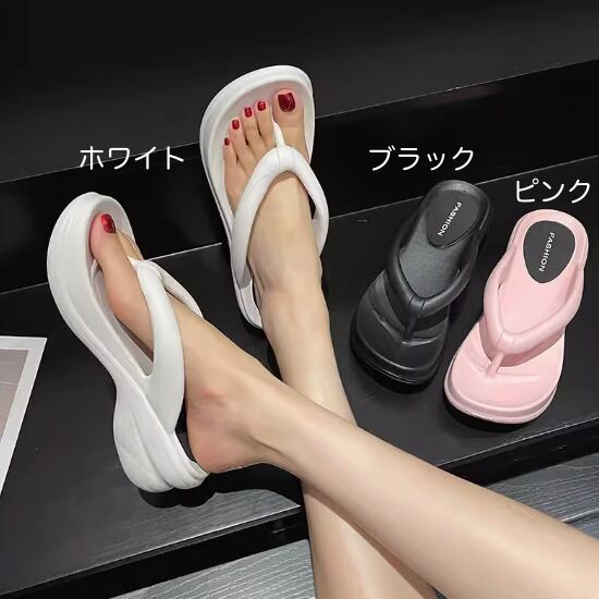 ビーチサンダル レディース 厚底 トングサンダル 黒 白 ブラック ホワイト サンダル おしゃれ リゾートサンダル ビーサン 海 プール ビーチサンダル レディース 厚底 トングサンダル