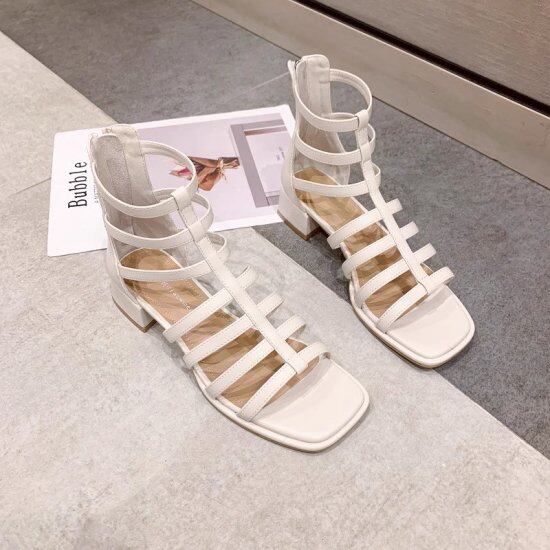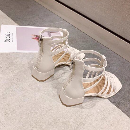 サンダル レディース グラディエーターサンダル ローヒール 太ヒール チャンキーヒール 3.5cmヒール フェイクレザー エコレザー アンクル バックファスナー オープントゥ カジュアル おしゃれ