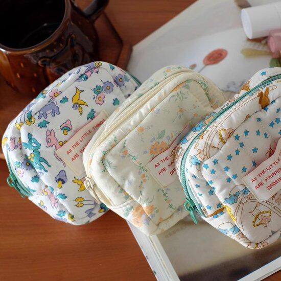 ポーチ レディース キルティング ミニポーチ スクエアポーチ レトロ プリント メルヘン コットンポーチ メイク 文具 収納 sweet 花柄 フラワープリント かわいい ガーリー おしゃれ