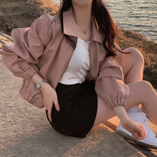レザージャケット レディース 大きいサイズ ミディアム丈 ジッパー ファスナー ポケット 襟付き 3色 カジュアル 無地 シンプル 通勤 デート 女子会 お出かけ 休日 韓国 10代 20代 秋