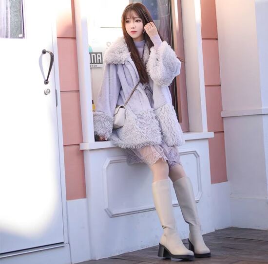コート 毛皮 大きいサイズ レディース レギュラー丈 ミディアム丈 長袖 もこもこ モコモコ ボタン ポケット ライトグレー 無地 シンプル 通勤 デート 女子会 お出かけ 休日 韓国 20代 秋冬