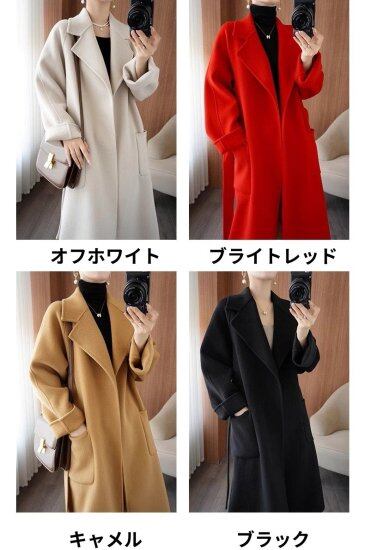 ロングコート レディース ガウンコート ウールコート Vネック テーラードカラー ベルト付き チェスターコート ロング丈 シンプル きれいめ エレガント 上品 おでかけ オフィスコーデ おしゃれ