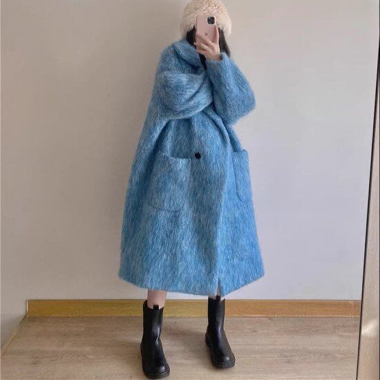 ロングコート レディース チェスターコート テーラードカラー Vネック ウールタッチ ボリュームコート 青 ブルー レトロ クラシカル かわいい きれいめ カジュアル あたたか 防寒 おしゃれ