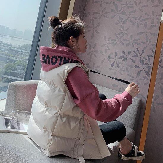 ダウンベスト レディース 中綿ベスト スタンドカラー ノースリーブ ショート丈 シンプル 無地 ファスナー ジッパー コットンベスト かわいい カジュアル ストリート あたたか 防寒 おしゃれ