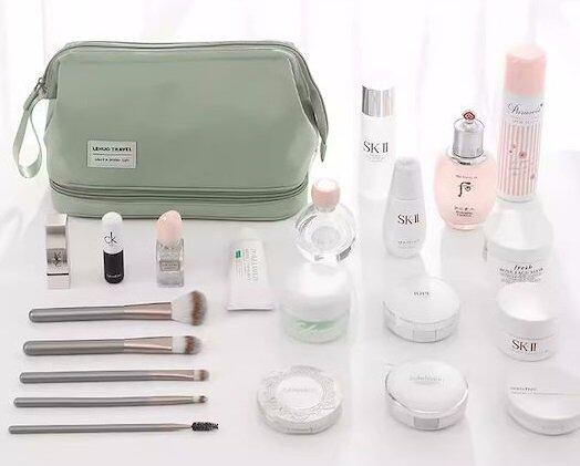 旅行にぴったりな防水機能のついた化粧ポーチ。