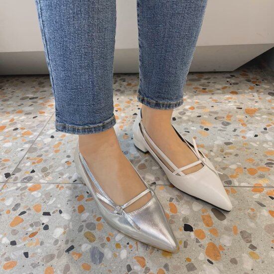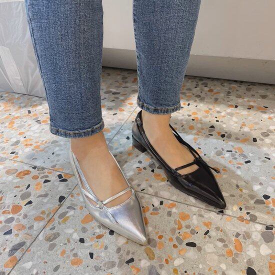 ポインテッドトゥでローヒールでもスッキリしたシルエット♪