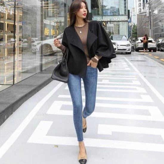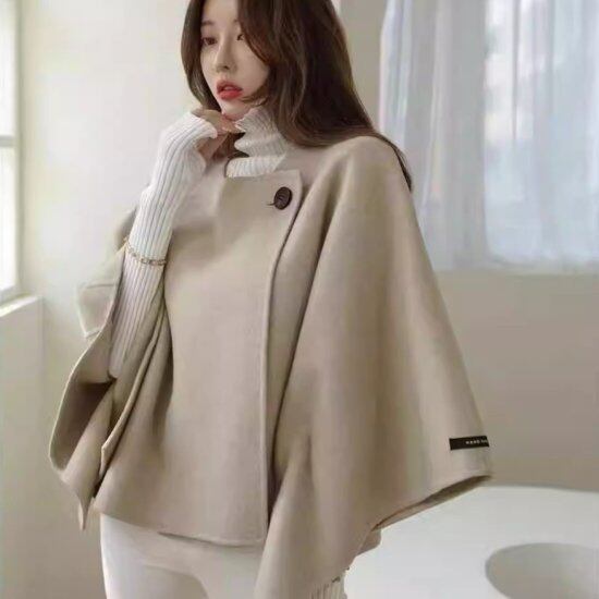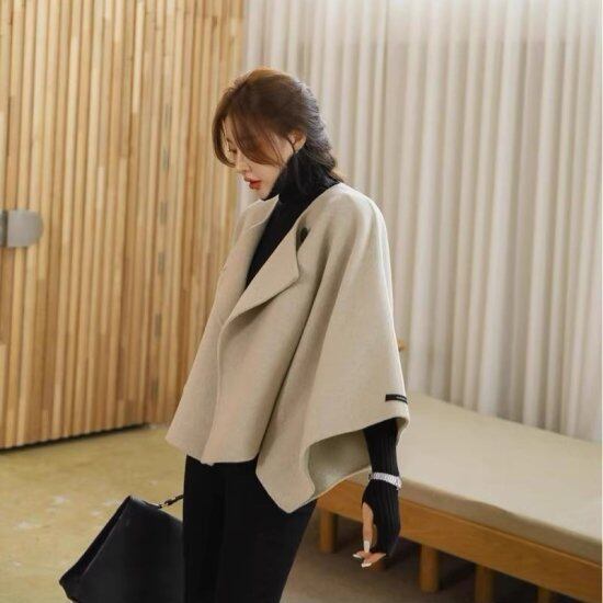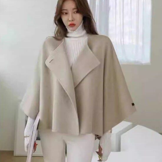 ショートコート レディース ケープ ウールコート Aライン ノーカラー 羽織り ライトアウター バットスリーブ ウール混 ジャケット マント 無地 きれいめ 上品 かわいい エレガント おしゃれ