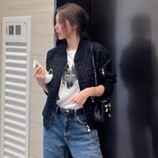 上品さが感じられるツイードブルゾン。