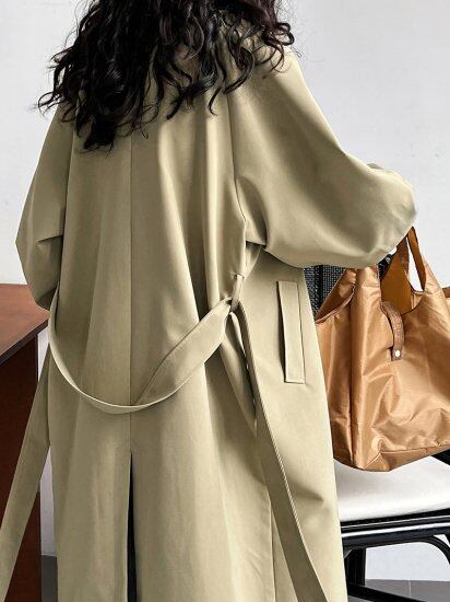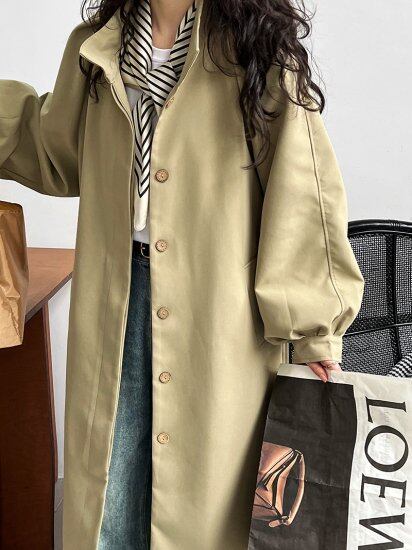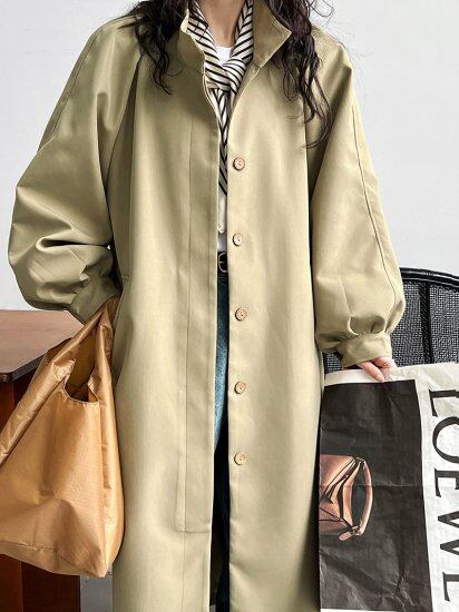 コート レディース スタンドカラー バルーンスリーブ ランタンスリーブ ミディアム丈 ロング丈 ボリューム袖 ベルト付き シングルブレスト きれいめ エレガント 上品 カジュアル オフィス おしゃれ