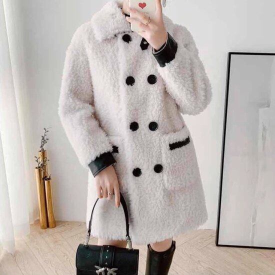 ファーコート レディース ボアコート ハーフコート ミディアム丈 ショート丈 ダブルブレスト フェイクレザー スタンドカラー もこもこ あたたか かわいい きれいめ カジュアル オフィス おしゃれ