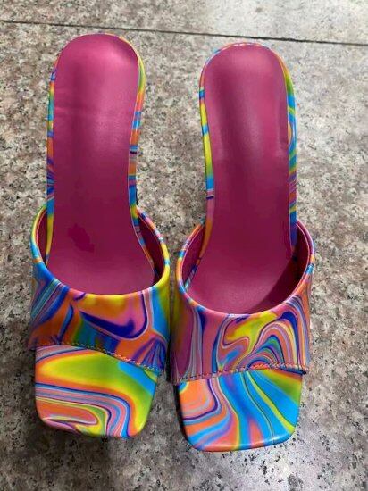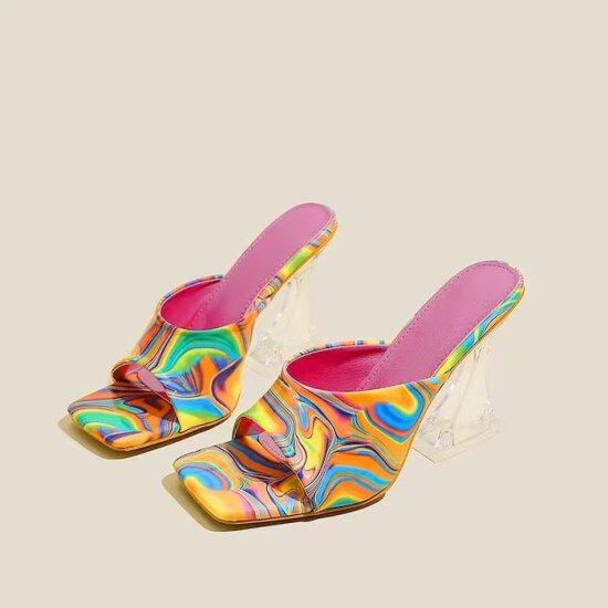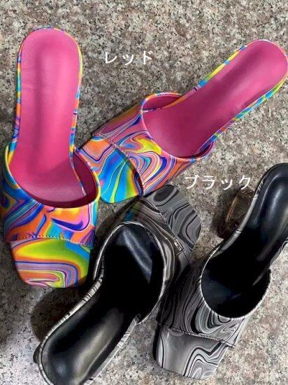 サンダル マーブル スクエアトゥ クリアヒール 大きなサイズ ブラック レッド ヒール マーブル サンダル おしゃれ 夏 ビーチ スクエア サンダル クリアヒール マーブル 7cmヒール 大きなサイズ