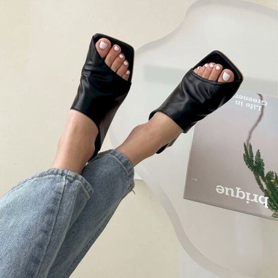 オープントゥで通気性もよく、歩きやすく脱げにくいのも◎