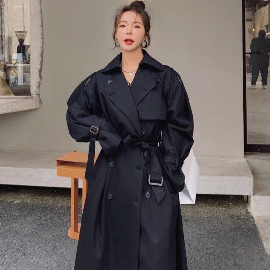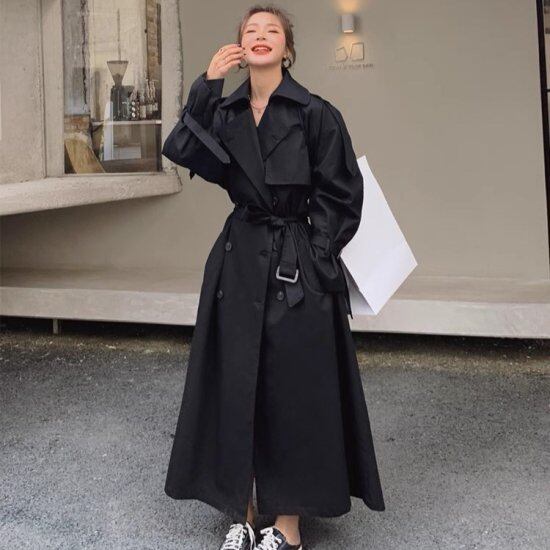 トレンチコート レディース ロングコート オーバーサイズ 長袖 ロング丈 マキシ丈 ベルト付き スーツ襟 ダブルブレスト 無地 ユニセックス ストリート きれいめ カジュアル トレンチ おしゃれ