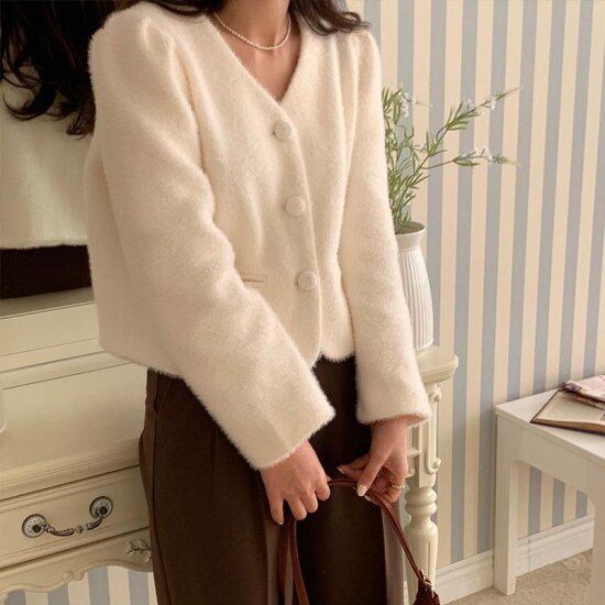 ショートコート レディース 大きいサイズ ショート丈 カジュアル もこもこ モコモコ 長袖 ボタン ポケット Vネック 無地 シンプル オフホワイト 通勤 デート 女子会 お出かけ 休日 20代 秋冬