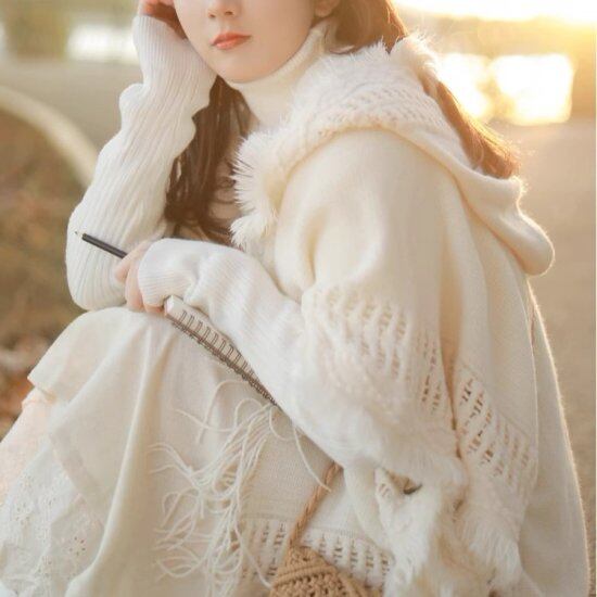 ポンチョ レディース マント ショール フード付き ニット ボヘミアン エスニック フリンジ ケープコート 羽織り カーディガン ミディアム丈 かわいい ガーリー カジュアル あたたか おしゃれ