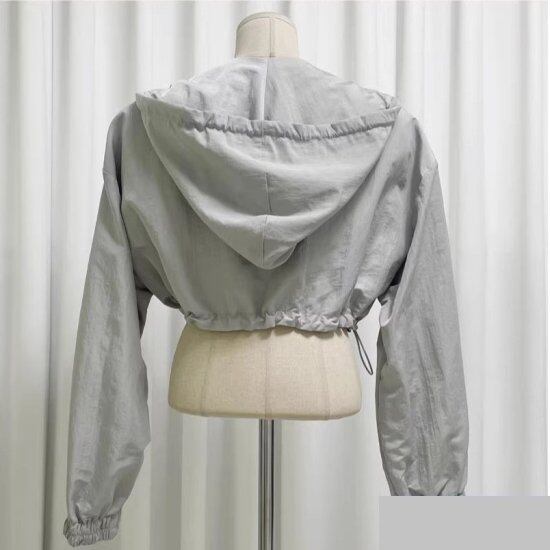 ナイロンブルゾン レディース ショートブルゾン シャーリング フード付き ショート丈 クロップド丈 ウィンドブレーカー ジャケット ジャンパー 羽織り 個性的 カジュアル ライトアウター おしゃれ