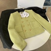 ジャケット レディース 大きいサイズ レギュラー丈 ミディアム丈 イエロー 黄色 長袖 ボタン ポケット ラウンドネック 無地 シンプル 通勤 デート 女子会 お出かけ 休日 イベント 20代 春