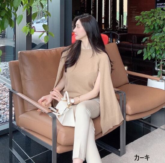 ニットトップス レディース トップス ニット セーター ポンチョ風 ケープ マント スリットニット ラウンドネック シンプル 無地 きれいめ エレガント スタイリッシュ お出かけ おしゃれ カジュアル
