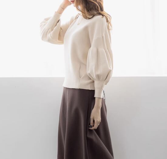 ふんわりとしたボリューム袖が女性らしいトップス。