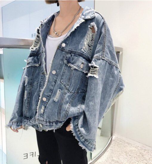 ジャケット レディース 大きいサイズ デニムジャケット レギュラー丈 ミディアム丈 デニム 長袖 ボタン ポケット ダメージ 無地 シンプル 通勤 デート 女子会 お出かけ 韓国 10代 20代 春秋