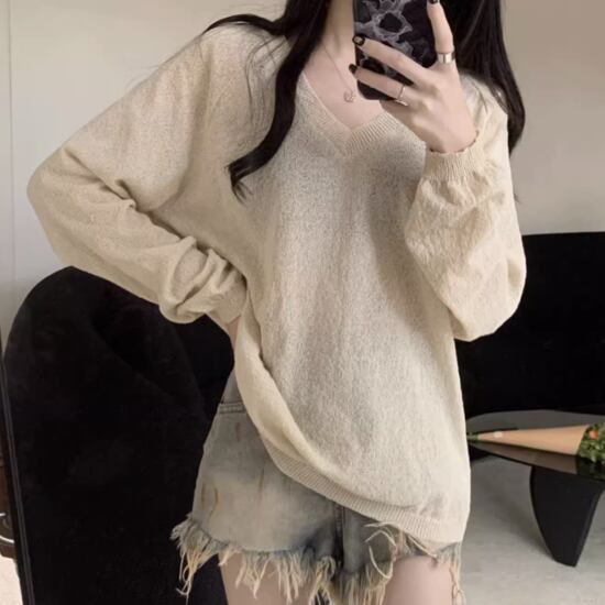 ニットセーター レディース トップス Vネック プルオーバー シンプル 無地 カジュアル お出かけ おしゃれ きれいめ エレガント ベーシック 定番 ゆったり ルーズシルエット ファッション 女性