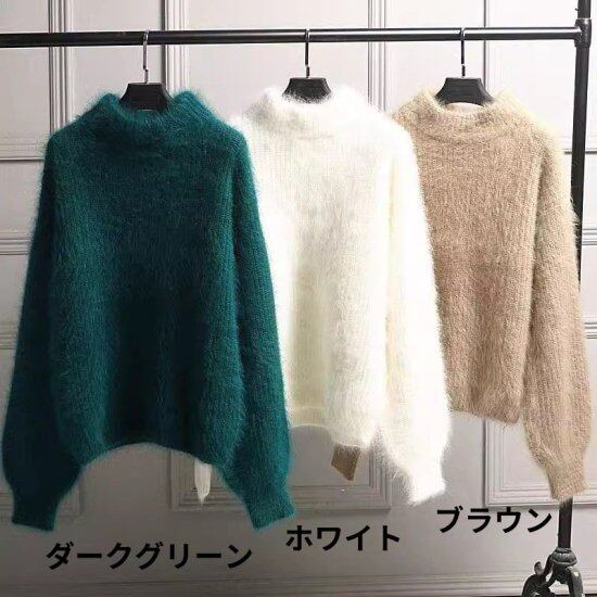 ニット レディース ハイネックセーター ボトルネック シャギーニット ボリューム袖 オーバーサイズ ふわふわ ルーズニット あたたか かわいい ガーリー カジュアル オフィス おでかけ おしゃれ