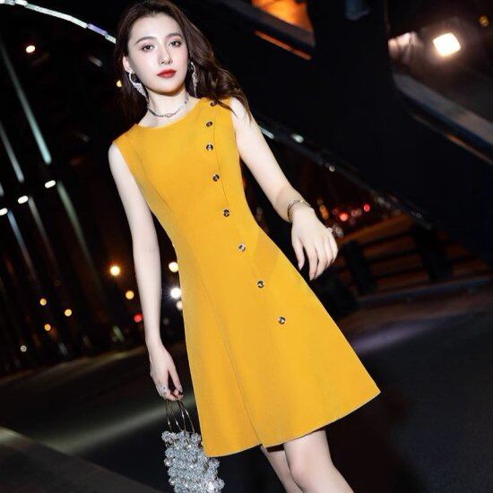 ワンピース レディース ノースリーブ ミニワンピース Aライン ショート丈 ひざ丈 ひざ上 ラウンドネック ボタン 無地 きれいめ エレガント 華やか 結婚式 演奏会 パーティードレス おしゃれ