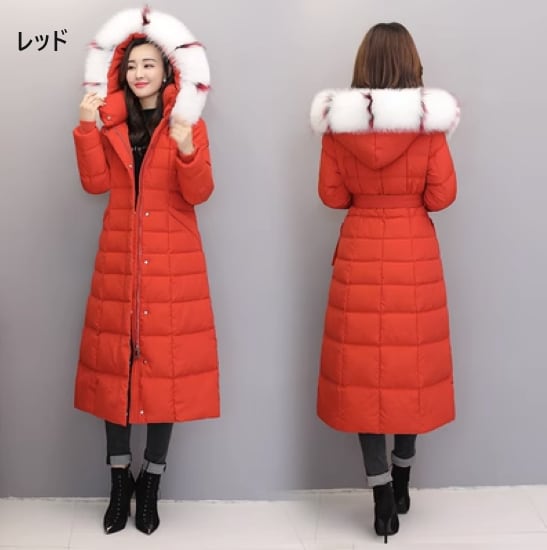 ダウンコート レディース アウター 羽織 ダウンジャケット ロングコート フード付き ファー ふわふわ ウエストベルト カジュアル お出かけ おしゃれ きれいめ エレガント 無地 防寒 防風 暖かい