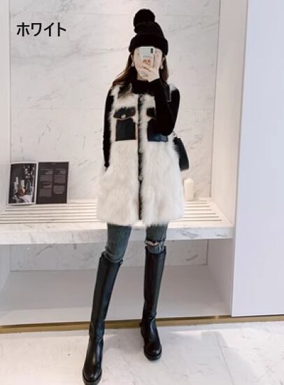 フェイクファーベスト レディース ベスト アウター 羽織 ノースリーブ ふわふわ 個性的 襟あり ポロ襟 フロントボタン 異素材ミックス ポケット カジュアル お出かけ おしゃれ ファッション 女性