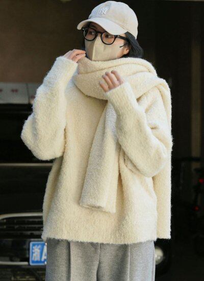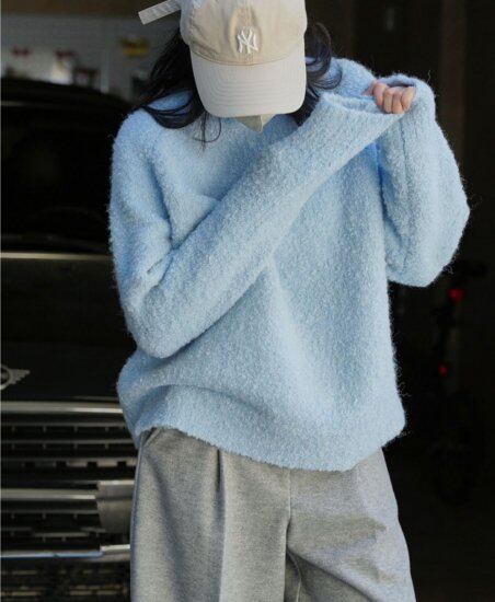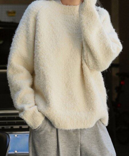 ニット レディース 大きいサイズ セーター レギュラー丈 ミディアム丈 もこもこ モコモコ 2色 長袖 ラウンドネック 体型カバー 無地 シンプル 通勤 デート 女子会 お出かけ 韓国 20代 秋冬
