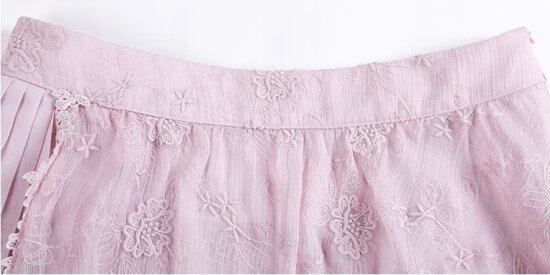 セットアップ レディース レース刺繍 上下セット レーストップス レーススカート スカートセット プリーツスカート 七分袖 透け感 きれいめ フェミニン エレガント 2点セット パーティー おしゃれ