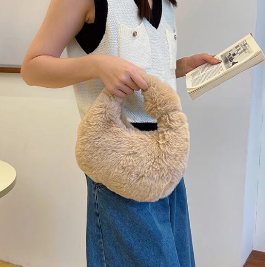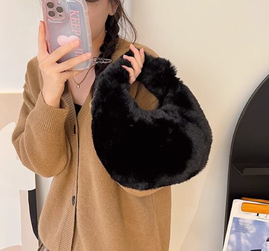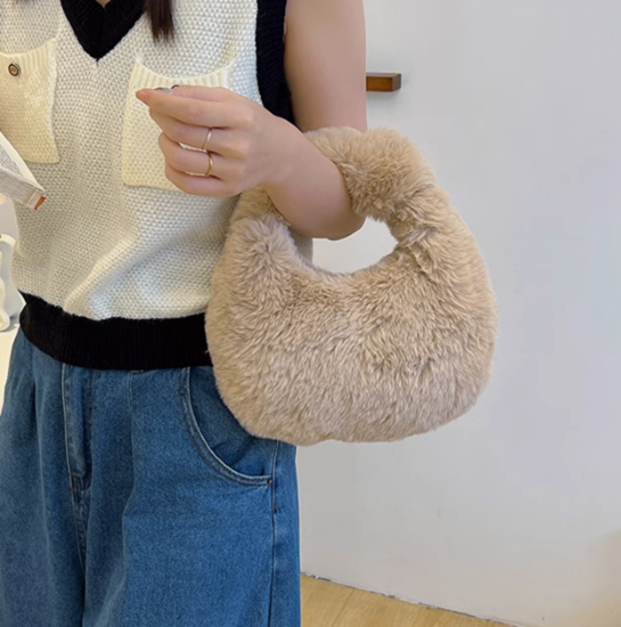 ハンドバッグ レディース バッグ 鞄 かばん ファーバッグ ふわふわ もこもこ シンプル 無地 秋冬 ワンハンドルバッグ カジュアル お出かけ おしゃれ ジッパー ソフト 柔らかい コンパクト 女性