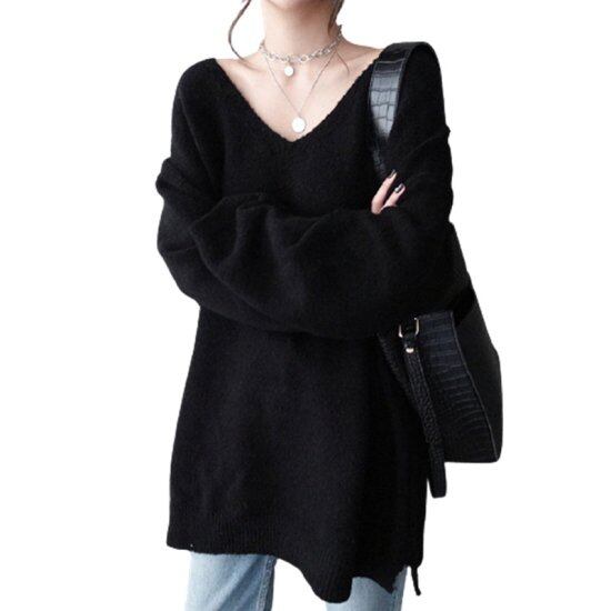 ニット レディース 大きいサイズ セーター レギュラー丈 ミディアム丈 3色 長袖 Vネック 体型カバー カジュアル ストレート 無地 シンプル 通勤 デート 女子会 お出かけ 韓国 20代 秋冬