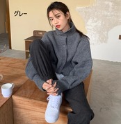 ニットセーター レディース トップス ニット セーター 長袖 リブニット スタンドカラー ハイネック フロントボタン ゆったり ルーズ 秋冬 シンプル カジュアル お出かけ おしゃれ ファッション