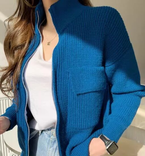 ニットセーター レディース トップス ニット セーター ニットカーディガン ニットジャケット フロントジッパー ジップアップジャケット スタンドカラー 長袖 リブニット カジュアル おしゃれ 女性