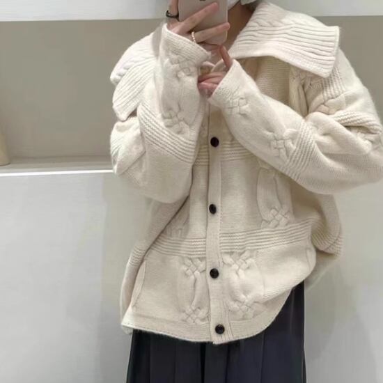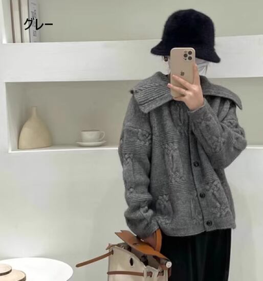ニットカーディガン レディース カーディガン 羽織 ニット セーター トップス フロントボタン 大きめ襟 ビッグカラー ゆったり ルーズ カジュアル お出かけ おしゃれ 可愛い キュート 長袖 女性