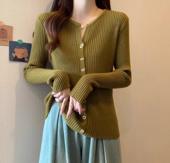 ニットセーター レディース トップス ニット セーター 長袖 リブニット ニットカーディガン 羽織 フロントボタン ラウンドネック スリムフィット 大きいサイズ カジュアル シンプル おしゃれ 女性