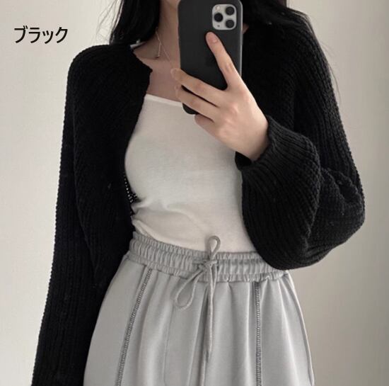 ニットカーディガン レディース カーディガン 羽織 ショート丈 クロップド丈 ボリューム袖 ボレロ 長袖 カジュアル お出かけ おしゃれ シンプル 無地 女性 ファッション シック ワンサイズ ニット