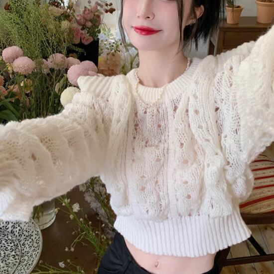 ニットセーター レディース トップス ニット セーター ショート丈 クロップド丈 長袖 ケーブル編み パワーショルダー カジュアル お出かけ おしゃれ ラウンドネック プルオーバー ファッション