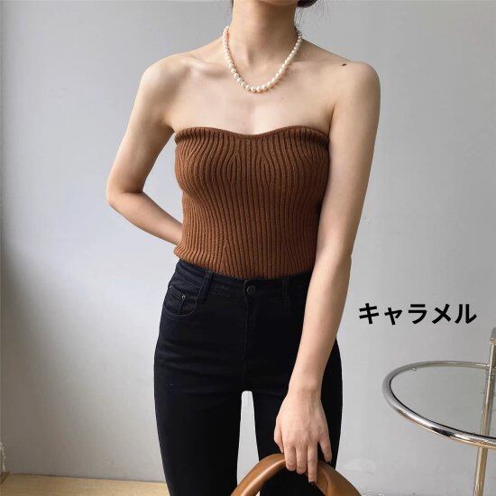 ニットビスチェ レディース ベアトップ チューブトップ リブニット ショート丈 クロップド丈 無地 キャミソール インナー かわいい きれいめ ガーリー カジュアル セクシー ストリート おしゃれ